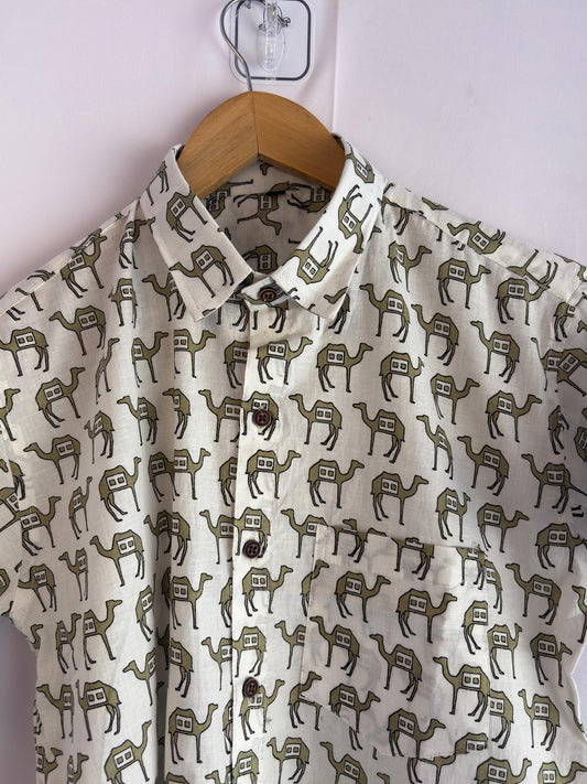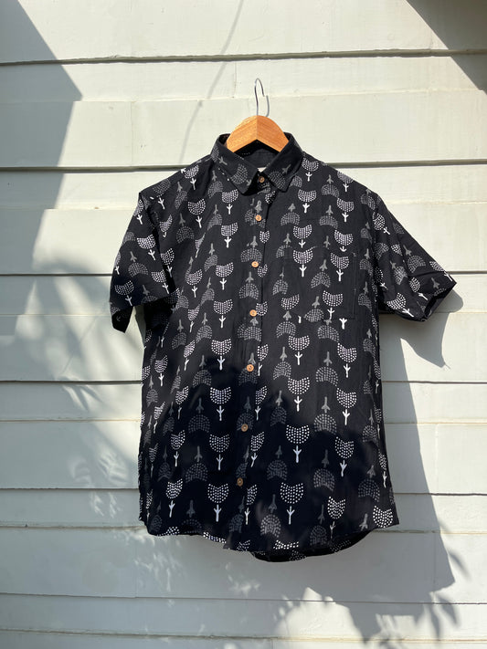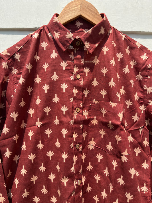 Blue & Red Floral Hand Block Printed Cotton Shirt