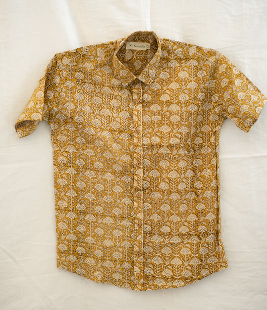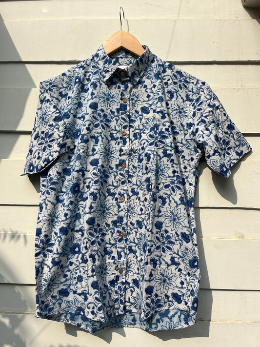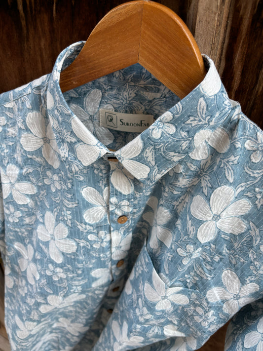 Blue Pastel Floral Hand Block Printed Cotton Shirt
