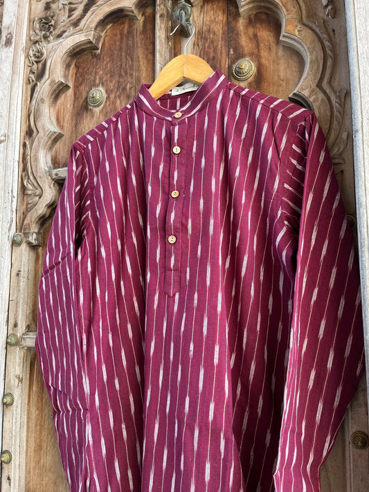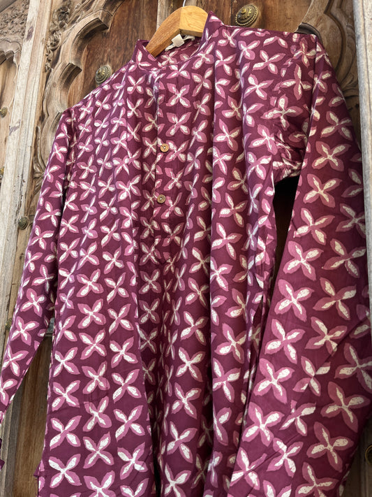 Boysenberry Sanganeri Printed Men's Long Kurta