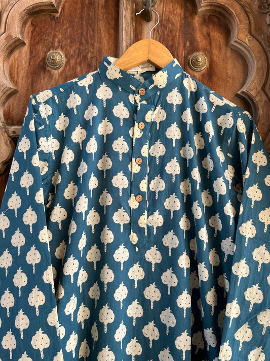 Blue Bayoux Sanganeri Printed Men's Long Kurta