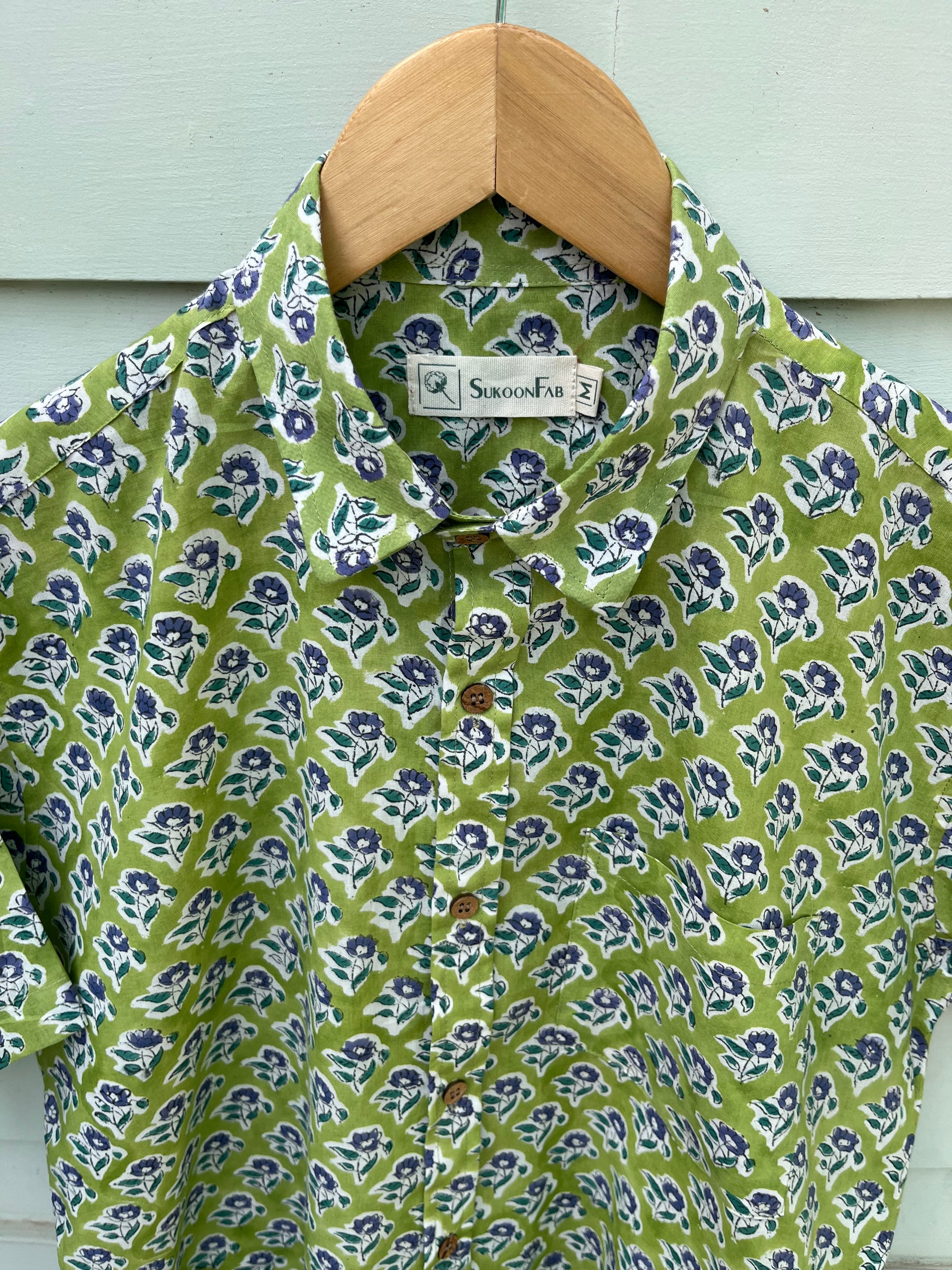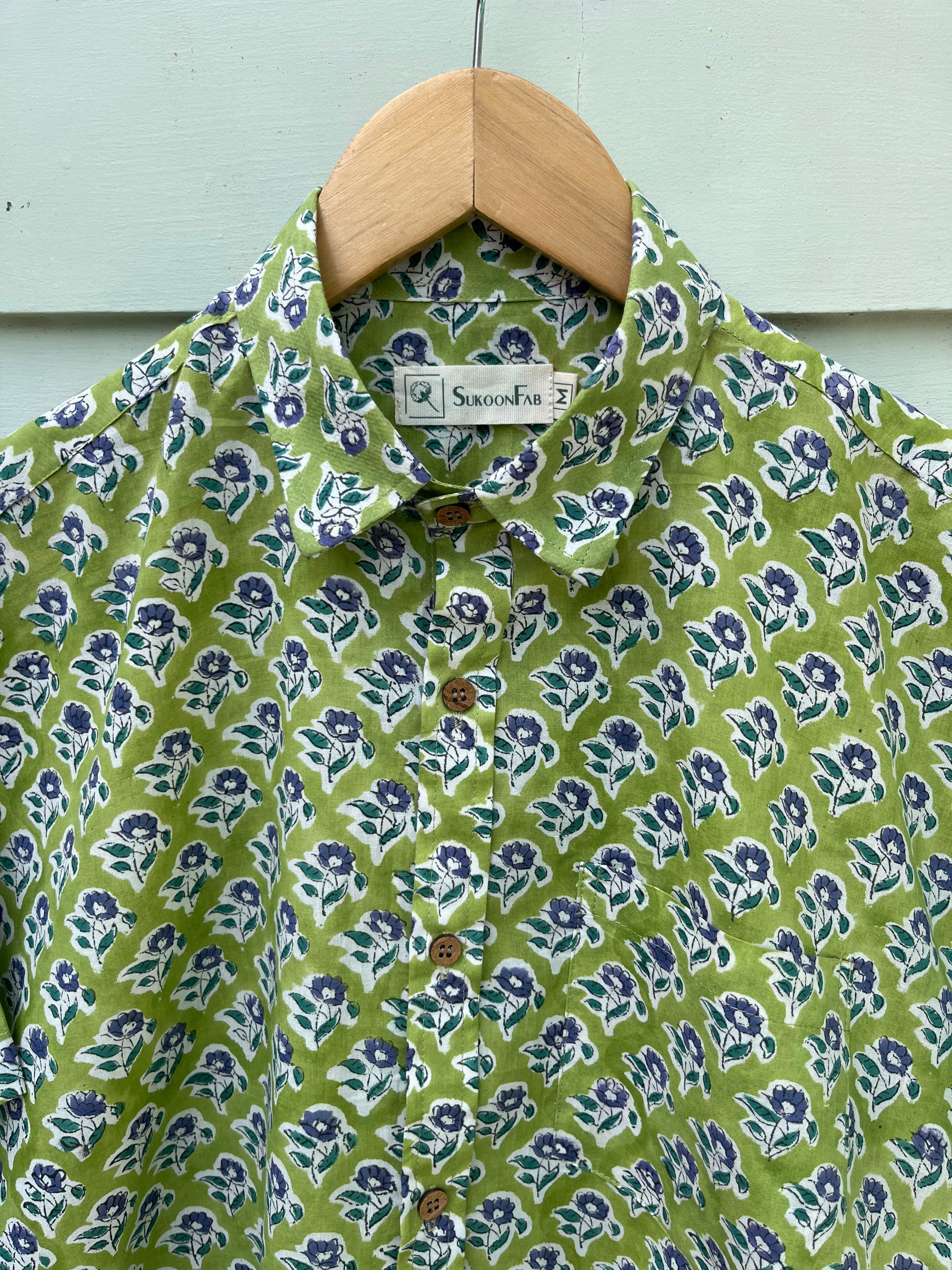 Add a touch of timeless tradition to your wardrobe with the Green Floral Hand Block Printed Cotton Shirt from Sukoon Fab. Expertly handcrafted using age-old block printing techniques, this shirt features intricate floral patterns on soft, breathable cotton — a true celebration of heritage and style.